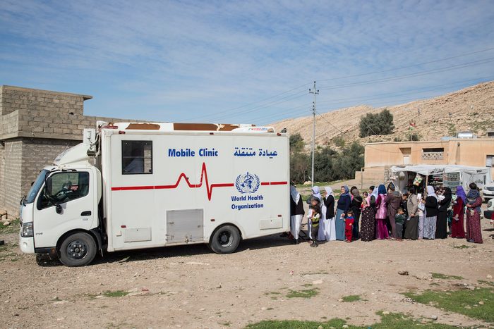 A WHO mobile clinic in northern Iraq providing equitable health services. (Credit: WHO)