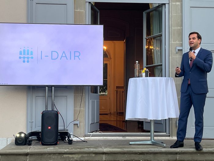 Ricardo Baptista Leite, the new CEO of the International Digital Health and Artificial Intelligence Research Collaborative (I-Dair), soon to be known as Health.AI, at a launch event in Geneva, 2 October 2023. (Geneva Solutions/Maurizio Arseni)