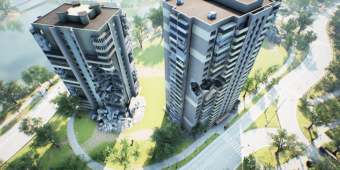 A screenshot of CGI Kite’s 3D models of buildings damaged in Ukraine. (Courtesy of CGI Kite)